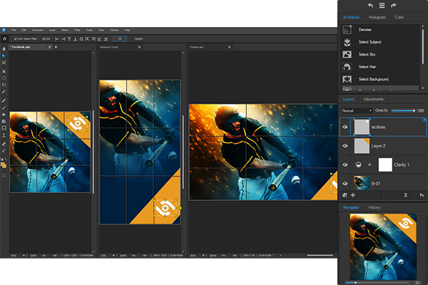 Whether you’re making pixel-perfect edits or building something from the ground up, Gemstone’s layered editor keeps pace. Stack images, text, and shapes on infinite layers. Use AI-fueled filters and one-click AI Actions to handle the heavy lifting, fast. Apply layer masks, blend modes, and more until it looks exactly right. Gemstone gives you the tools to refine and the freedom to reinvent.